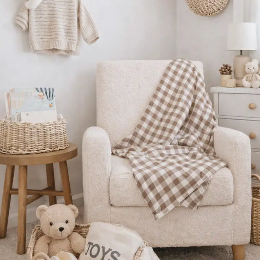 Bamboo Muslin Swaddle Blanket (Mocha Checkers)