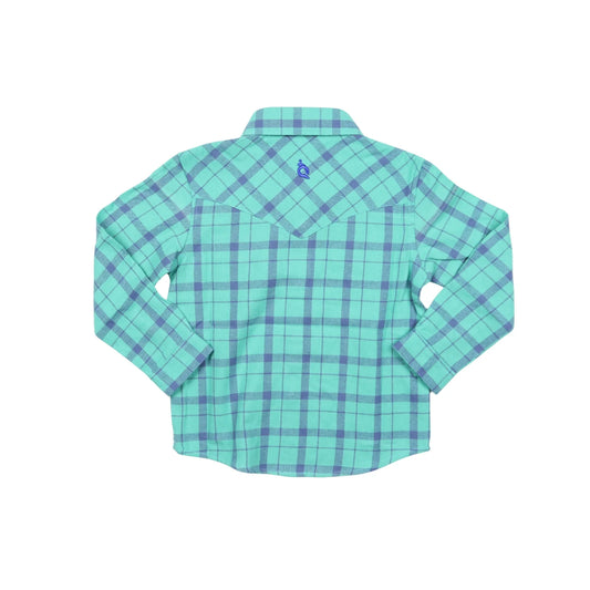 Blue & Green Plaid Flannel Pearl Snap Shirt