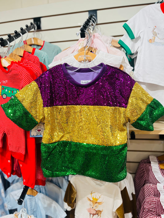 Sequins Mardi Gras Color Block Top