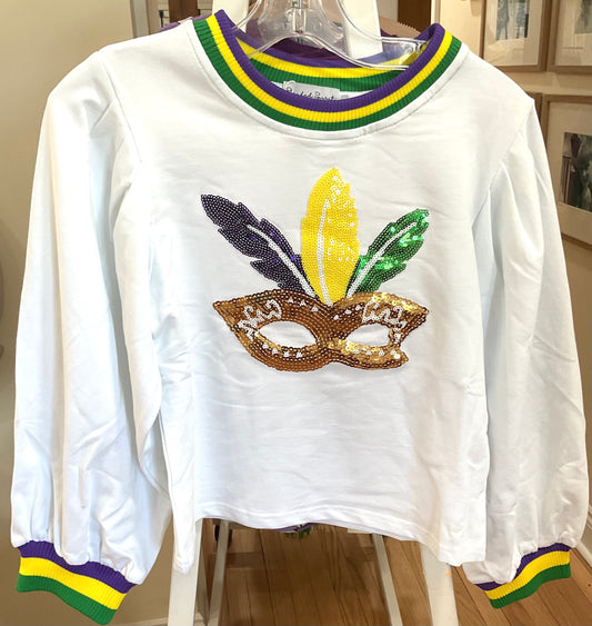 Patch Sweatshirt w/Puff Sleeve - Mardi Gras Mask