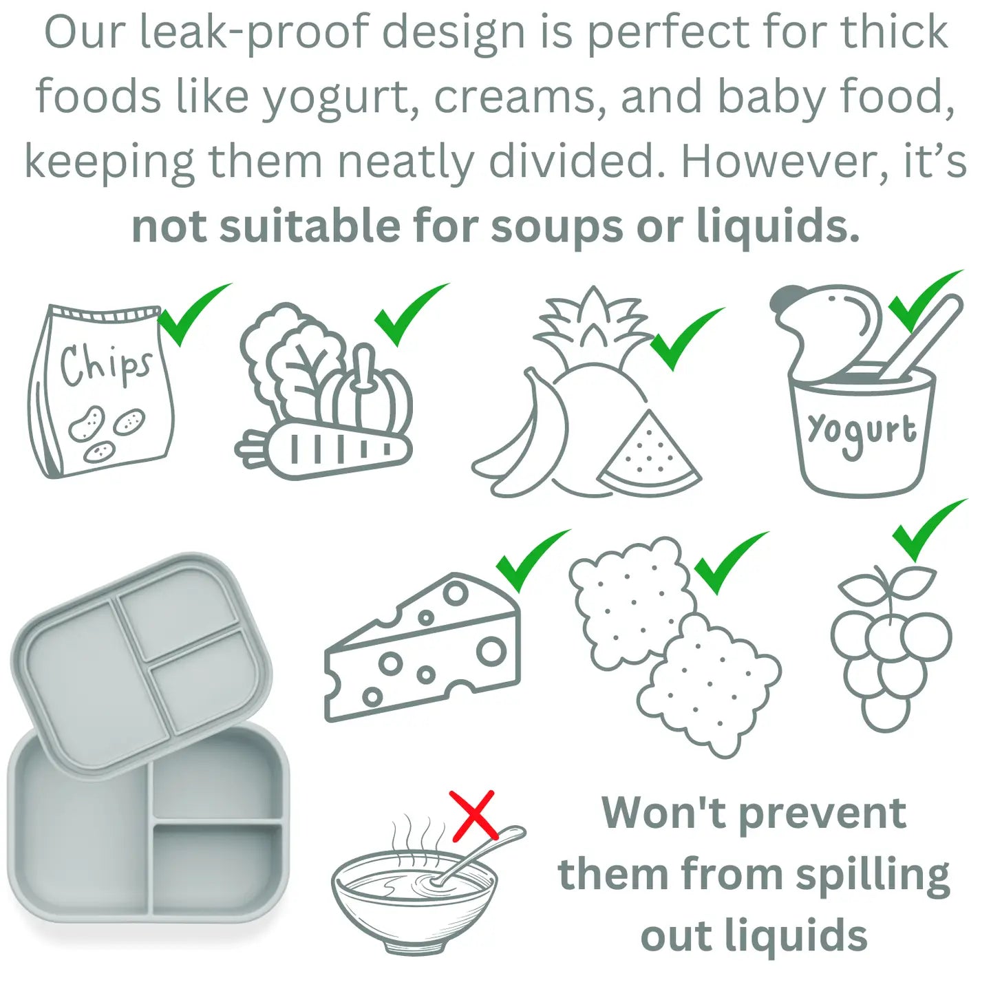 Get ready for the back-to-school season with our best-seller, the leakproof and reusable 100% non-toxic food-grade silicone bento box. Designed to provide healthy, on-the-go meals for both you and your little one, this travel essential bento box features three compartments to easily separate and portion out your favorite foods. The leakproof design ensures your meals stay fresh and mess-free, while the flexible silicone material makes it a breeze to clean.