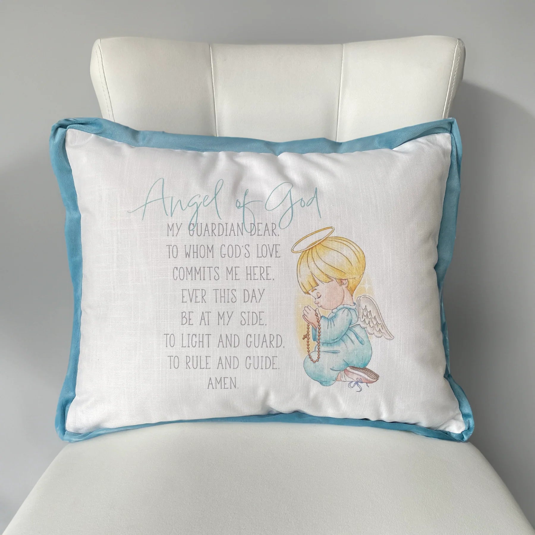 This blue Guardian Angel decorative throw pillows are the perfect way to celebrate baptisms, christenings, first communions, or any special event for your little one!