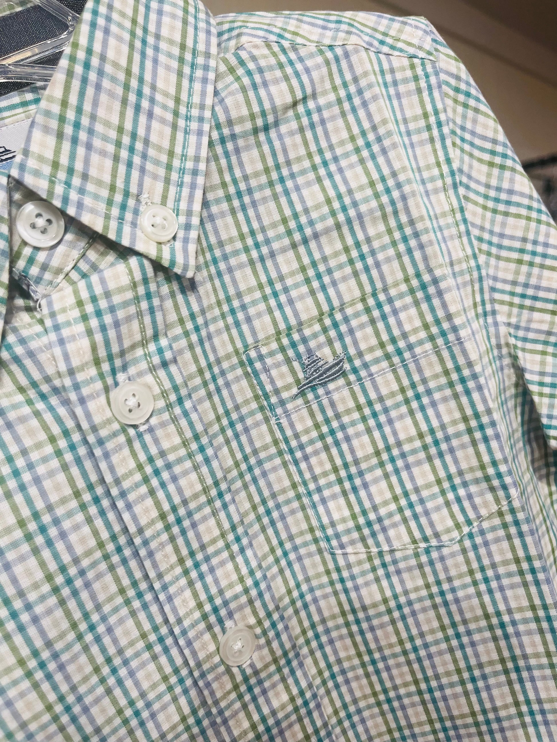 Button up dress shirt in blue/khaki/ turquoise