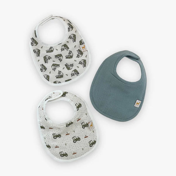 A must have for your teething little or mealtime! Crafted from soft muslin cotton, these bibs offer gentle comfort against delicate skin. The velcro closures ensure quick and easy fastening.
