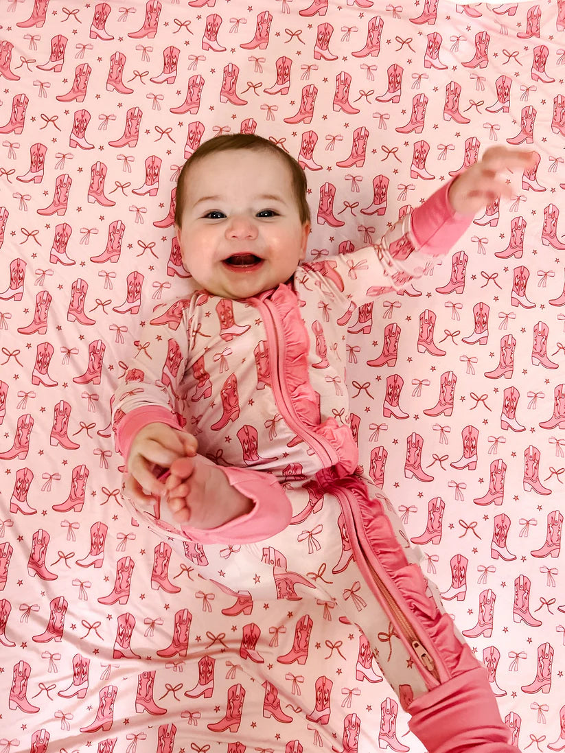LS Zip PJs - Pink Boots