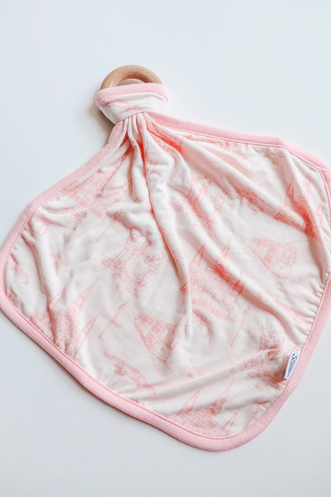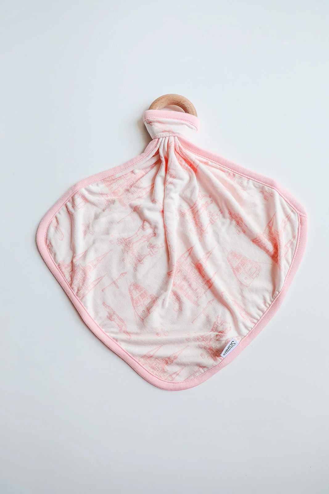 Pink Toile Lovie. W/Wooden Ring