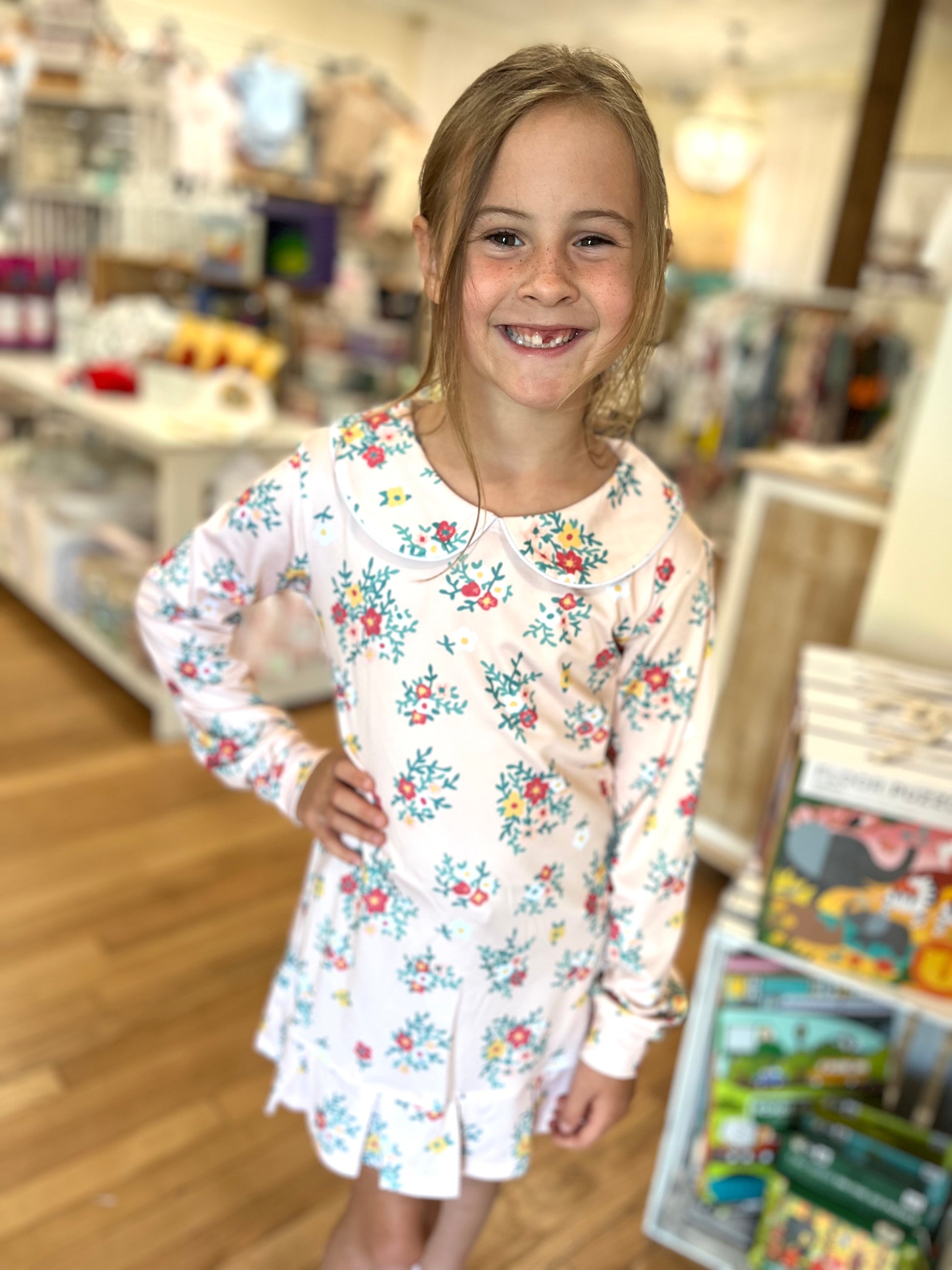 Pleated Dress with Green & Red floral from Honesty