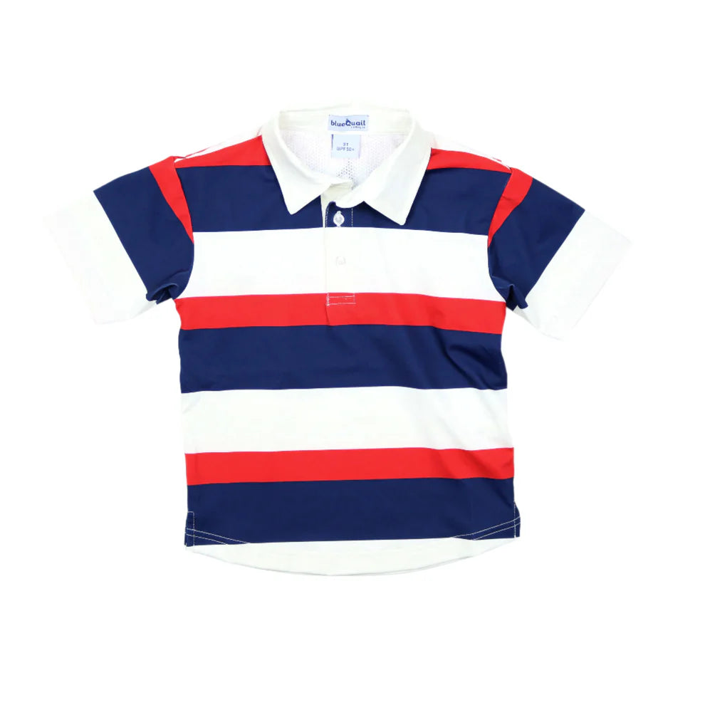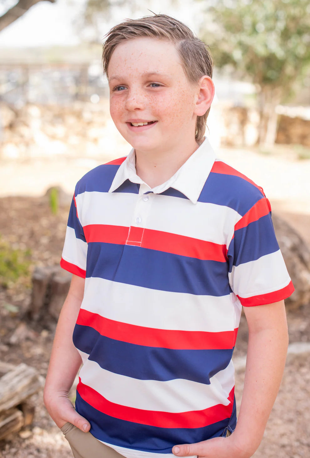 Red Rugby Stripe Polo Short Sleeve Shirt