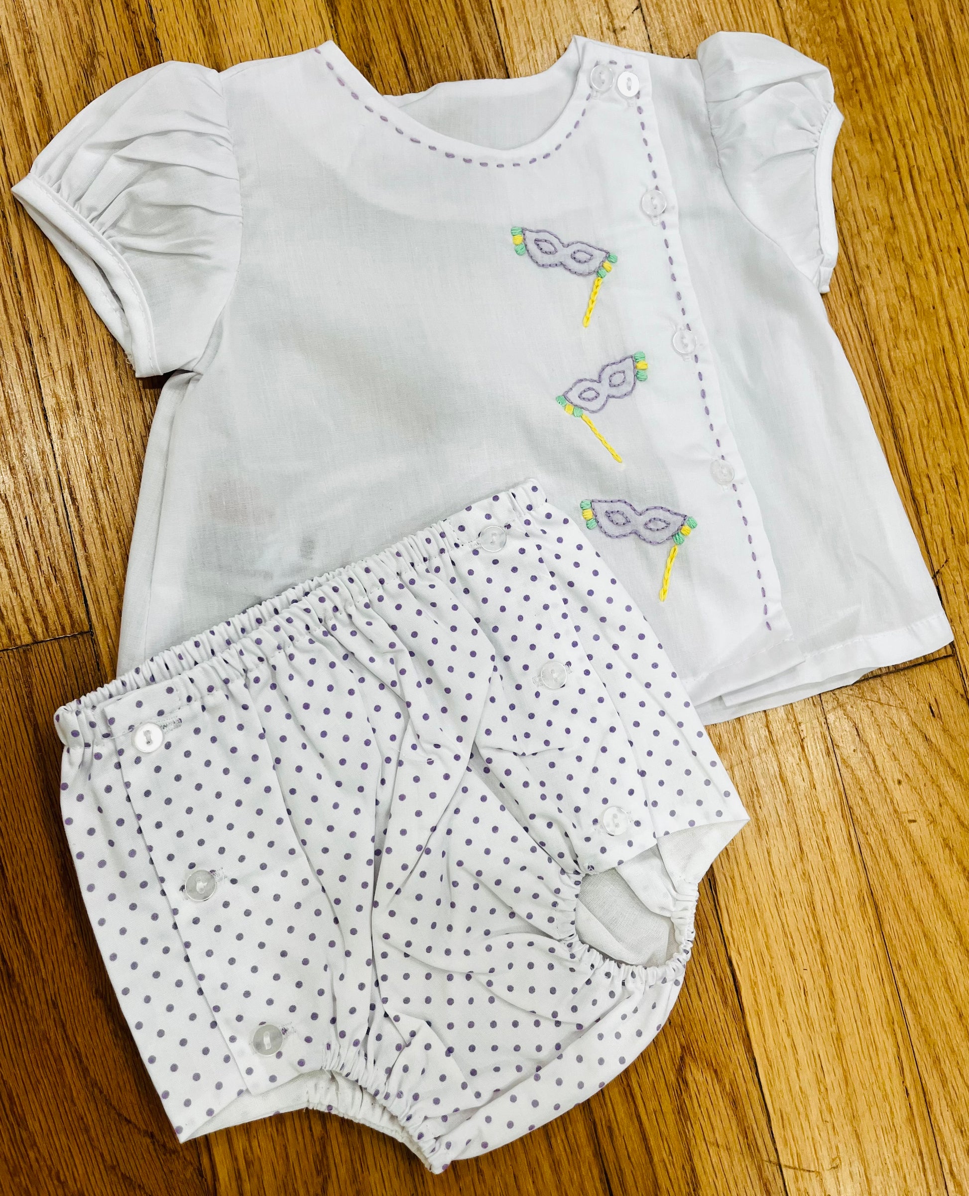 White Riley Girl Diaper Set - Mardi Gras Diaper Set